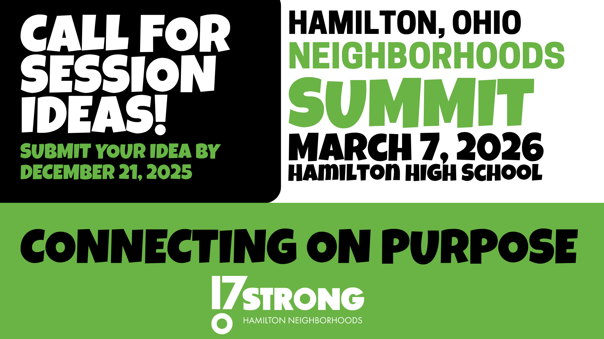 Residents, organizations, and local groups are invited to submit session ideas or express interest in becoming a Community Partner for the 2026 Hamilton Neighborhoods Summit! Sessions should reflect our theme, Connecting on Purpose, and highlight connection, collaboration, inclusion, and neighborhood pride..